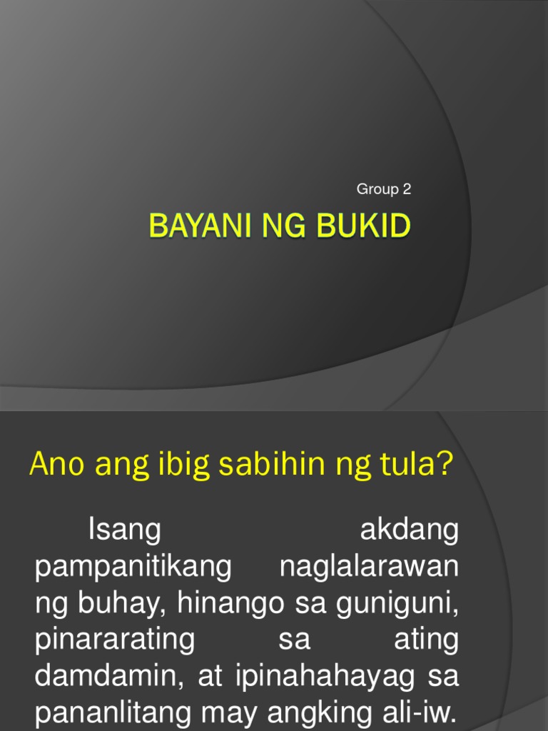 Itoy naglalarawan sa mga magsasakang naging bayani ng ating bukid. Dangan kasi pati yung van na lulan namin papuntang manaoag ay mababanaagan ng malalaking sticker kung saan nakasulat ang salitangbayani. 26012021 BAYANI NG BUKID Sa paksang ito ating pag-aaralan kung ano nga ba ang kahulugan at aral na makukuha natin sa tula na Bayani Ng Bukid.