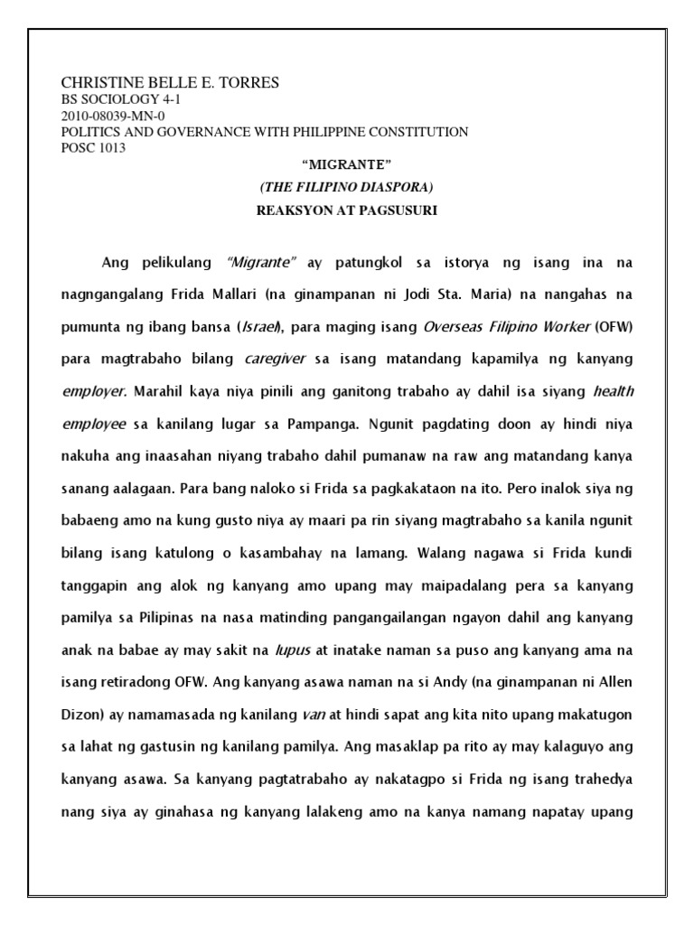 Bagong bayani ofw reaction paper. However this is the first time that I have heard Philippines is viewed as an emigration state by our foreign countries. As previously discussed the problem with such a heroic discourse. The remittances they sent to their families back home helped improved the Philippines economy.