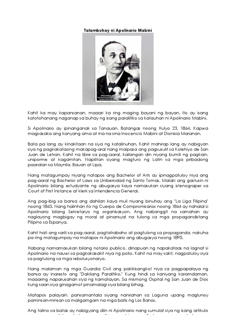 Lubos na kahanga-hanga ang kanilang mga naiambag na dapat tularan ng. The following is a short biography of Jose Rizal in Filipino. Talambuhay ni Melchora Aquino.