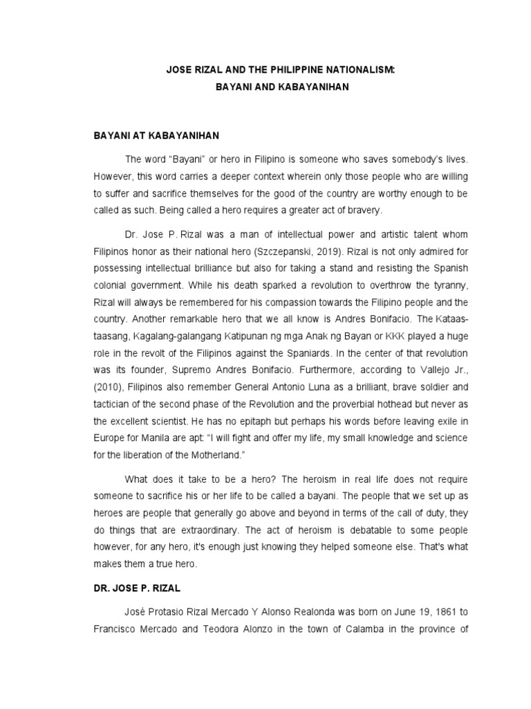 Jose Rizal And The Philippine Nationalism Bayani And Kabayanihan Philippines